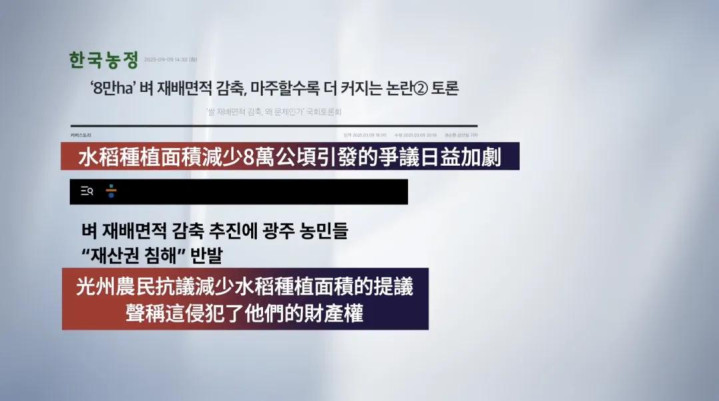 赞成者是担心米贱伤农,反对者则是担心粮食安全。2025年三月,在韩国国会激烈讨论是不是该实行面积调整政策的时候,日本农民运动组织的相关人士也用视频方式参与进来,现身说法称:“日本的稻米危机应该成为韩国的教训。”