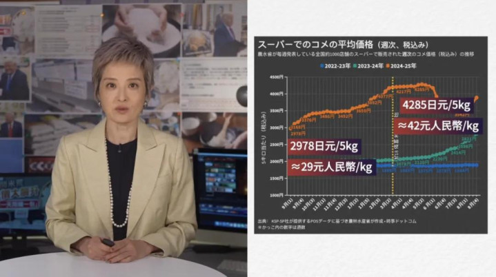 韩国大米价格高吧?但比起日本就小巫见大巫了。根据日本农林水产省的数据,日本大米价格从2024年9月,每5公斤2978日元开始飞涨到2025年5月最高值4285日元,相当于从每公斤约29元人民币,一路狂奔到了每公斤约42元人民币。