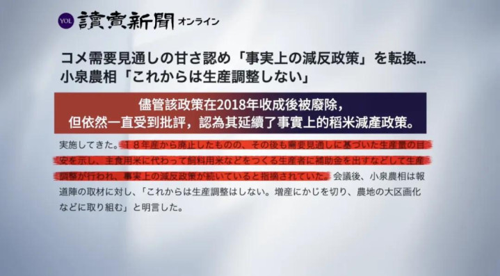 日本《读卖新闻》评论称, 即便“减反政策”已被废除, 但政府还是会继续预测大米的需求, 并根据需求制定各地大米的生产标准。