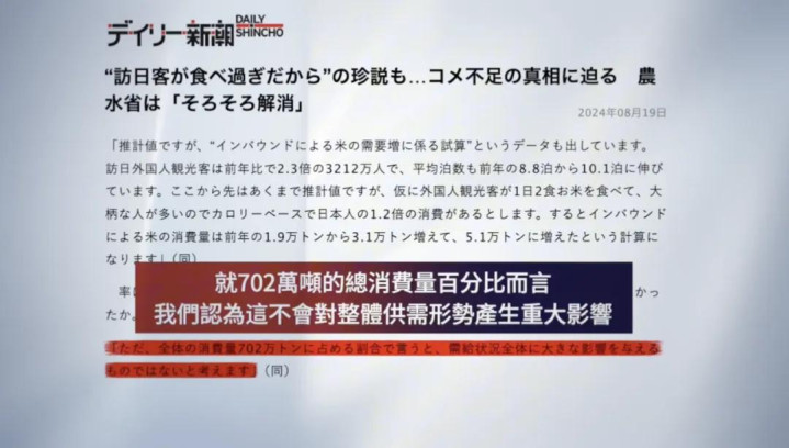 日本农林水产省曾表示:“外国游客太多,吃了太多米”,是大米供应紧张的部分原因,这个“部分”又究竟是“多大部分”呢?