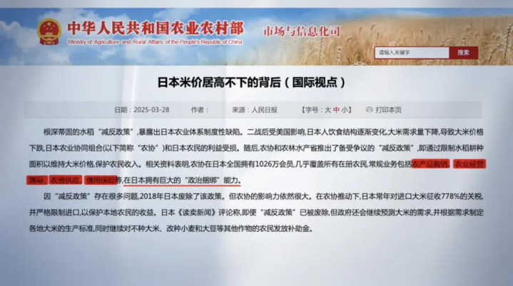 2025年3月以来,日本政府分四次累计投放了总计41万吨储备米,这也是日本自1995年建立储备米制度以来,首次为确保大米流通量动用储备米,农协收购了其中95%,于是日本魔幻般地出现了“政府放粮、农协囤粮”的局面。