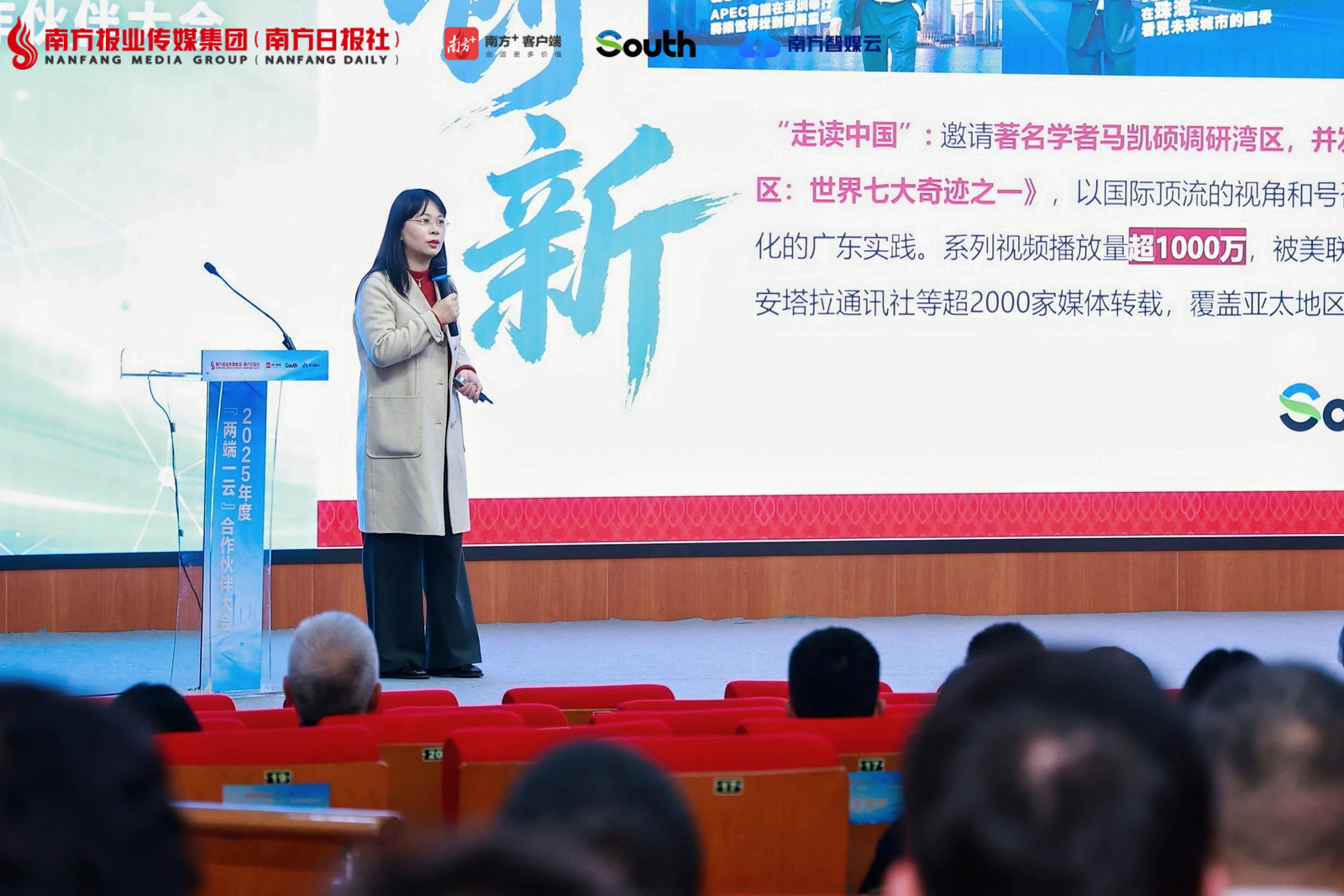 她表示,据监测,2025年South实现品牌重塑、焕新升级,网站、客户端和海外网络社交媒体平台账号粉丝数均大幅提升,总用户数超过2000万。“特别是城市频道在广东21个地级以上市实现全覆盖,推动广东全域国际传播新启航”,她认为,South已成为集纳、扩散广东各地声音的重要枢纽,助力多个广东城市在中国城市海外形象指数报告中位居全国前列,“South的一个突出特点就是,始终能够有效链接各地各部门、政商学等各界以及港澳台侨等境外资源。”