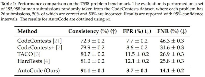 通过将验证器-生成器-检查器(及交互器)框架与双重验证协议相结合,AutoCode 在测试用例生成方面实现了最先进的可靠性,并超越了先前的方法,能够生成全新的、达到竞赛质量的问题。